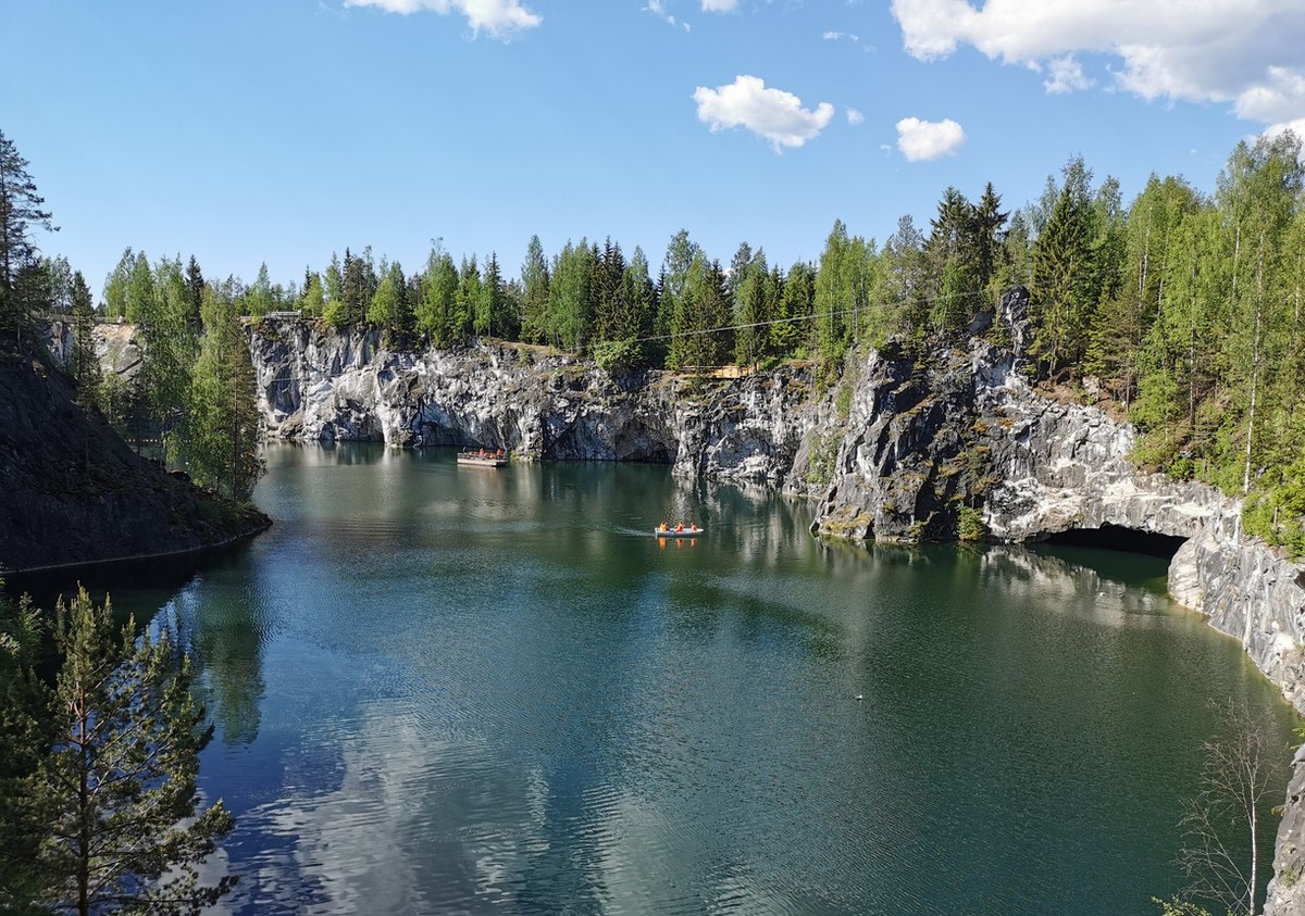 На реке Тохмайоки вы осмотрите живописный каскад водопадов Ахинкоски, а чуть позже — самый высокий водопад в Карелии Белые мосты. Откроете прекрасный вид на Ладожские шхеры с вершины горы Хийденвуори и локации, которые не входят в маршруты больших туристических групп, но раскрывают настоящую Карелию. А на территории горного парка Рускеала вы узнаете о добыче мрамора для Зимнего дворца и Исаакиевского собора, изучите впечатляющие фасады каньонов, сможете проплыть на лодочке по водоему, образованному в мраморном карьере, и исследовать подземные пейзажи заповедника.