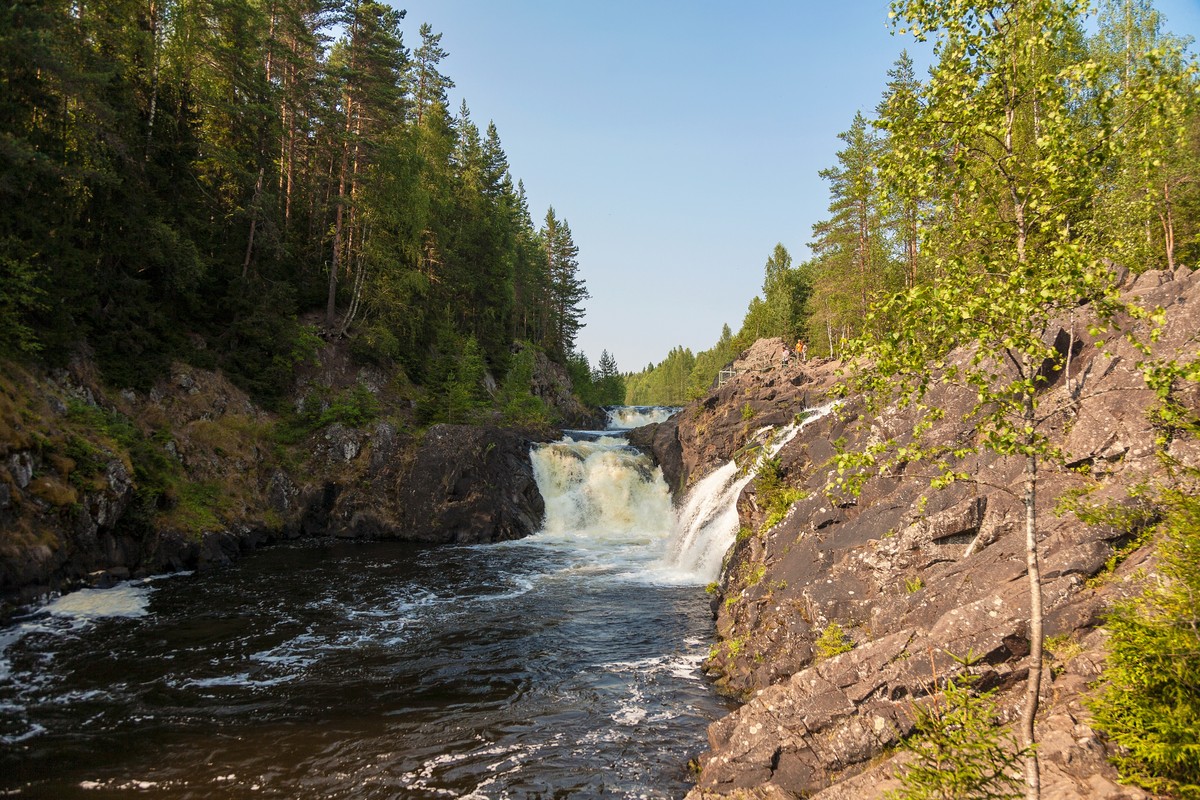 Водопад Кивач — один из самых известных каскадов Карелии. Вы полюбуетесь мощными потоками воды и погуляете по живописным тропам на территории заповедника.
