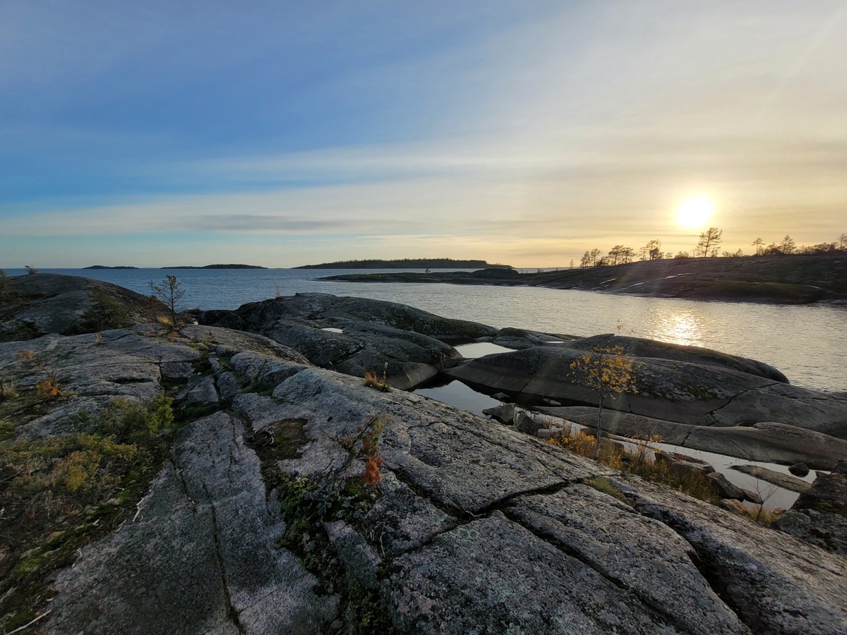 Дорога пройдёт через самые живописные уголки национального парка «Ладожские шхеры». По пути сделаем остановку на острове Хонкасало или другом заповедном месте, поднимемся на вершину Вахтимяки — с неё открывается редкий вид на Ладожские шхеры: сотни скальных островков будут раскинуты перед вами, как на ладони.