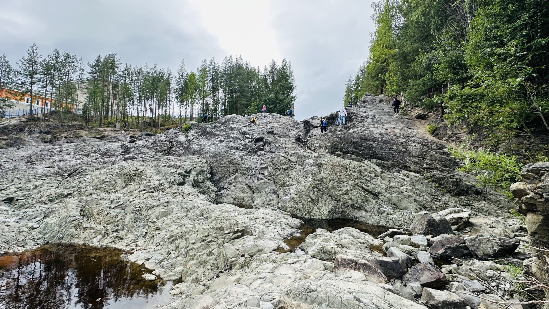 Парк "Белая гора" расположен на месте мраморных каменоломен. Заброшенный карьер превратился в живописное озеро с белоснежными берегами.