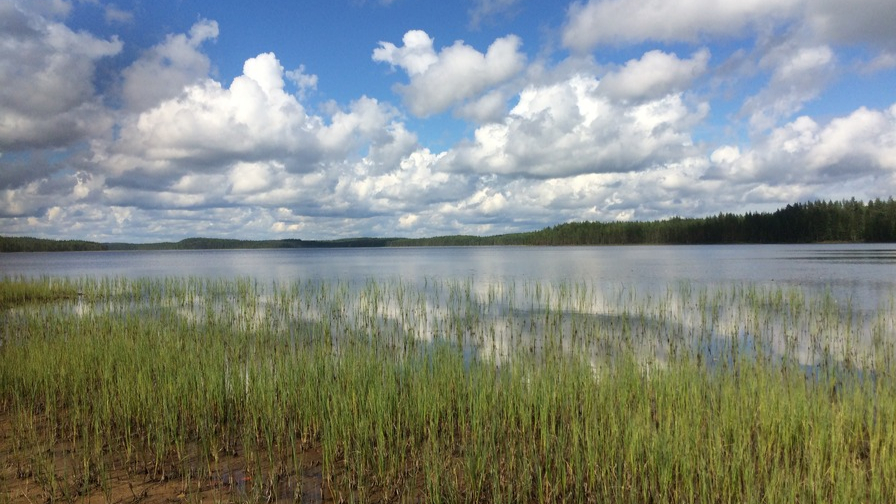 Водная растительность: осока, хвощ, кувшинка, мох фонтиналис.