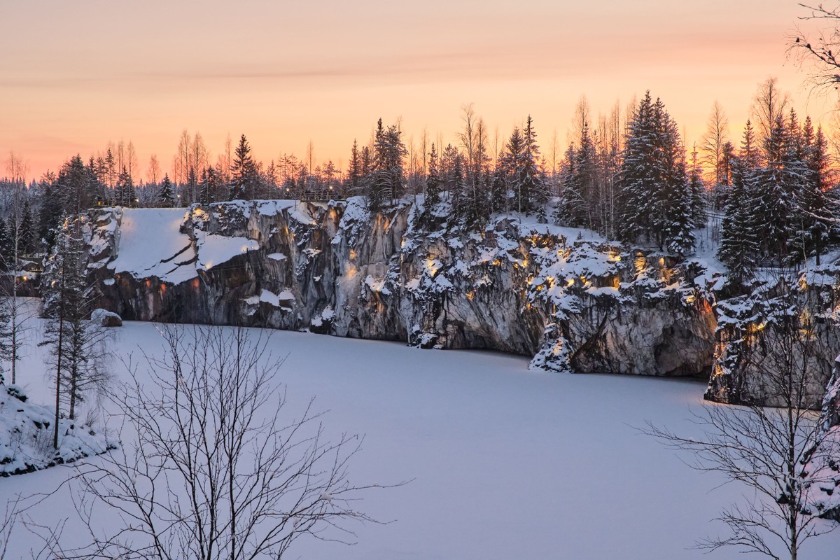 К 14:00 прибудем в парк. Вас ждёт часовая экскурсия по мраморному каньону. Затем — свободное время (2,5 часа). Вы можете погулять по экотропе длиной в 1,5 км и сделать красивые кадры с панорамных площадок. Можно зайти в пещеры и осмотреть залежи итальянского мрамора. В парке есть и другие развлечения: зиплайн, катание в конном экипаже и экскурсия «Подземная Рускеала». А ещё можно заглянуть в знаменитый ретропоезд и сфотографироваться в интерьерах 19 века.