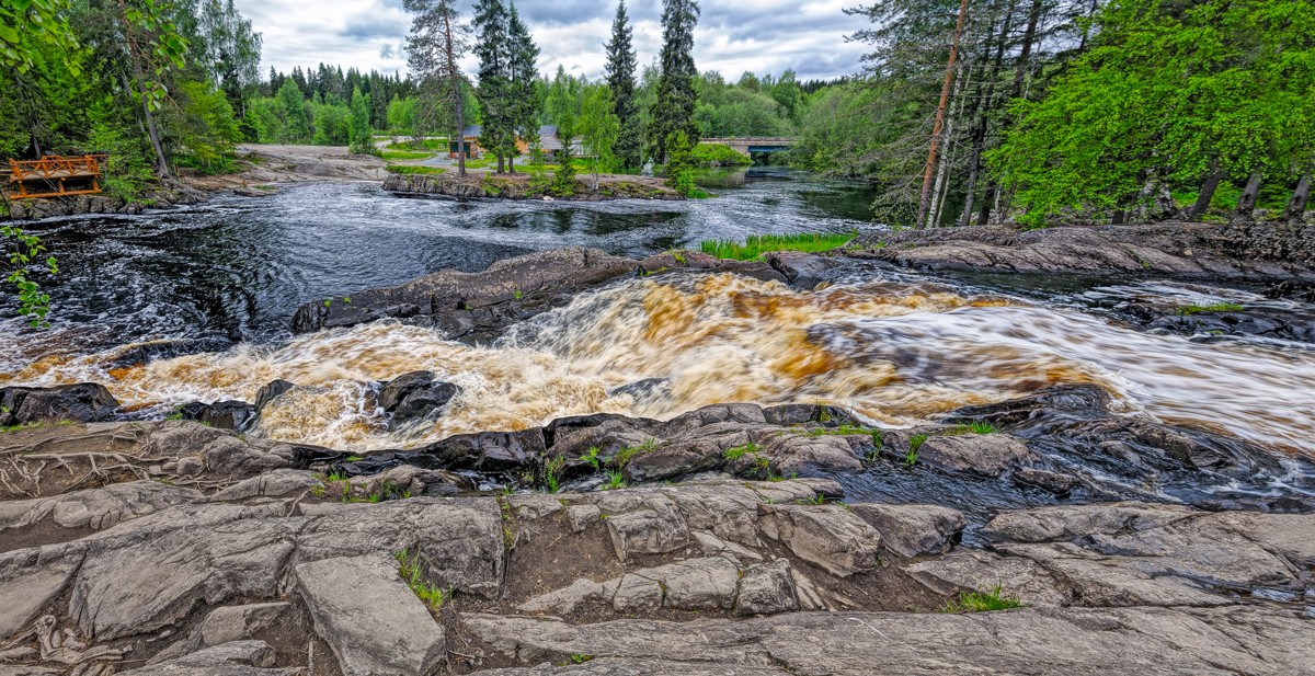 В 15:00 направимся к водопадам Ахвенкоски, где снимали фильм «А зори здесь тихие…». Желающие прогуляются по экомаршруту «Аллея сказок» (за доплату) и посмотрят с высоты подвесных мостов на бурлящие воды и фигурки персонажей карельских мифов, спрятанные среди деревьев.