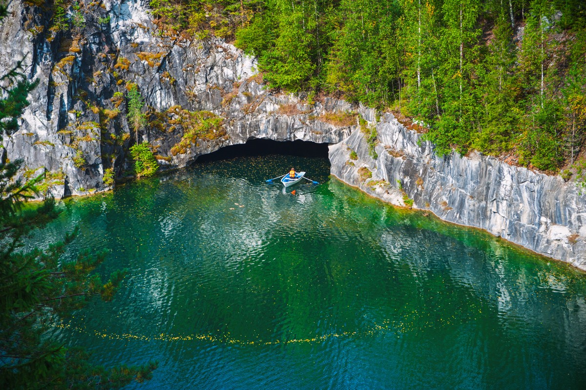 - Прокат лодки в Рускеала — 1200 руб. за 40 мин. (лодка до 4 чел.)